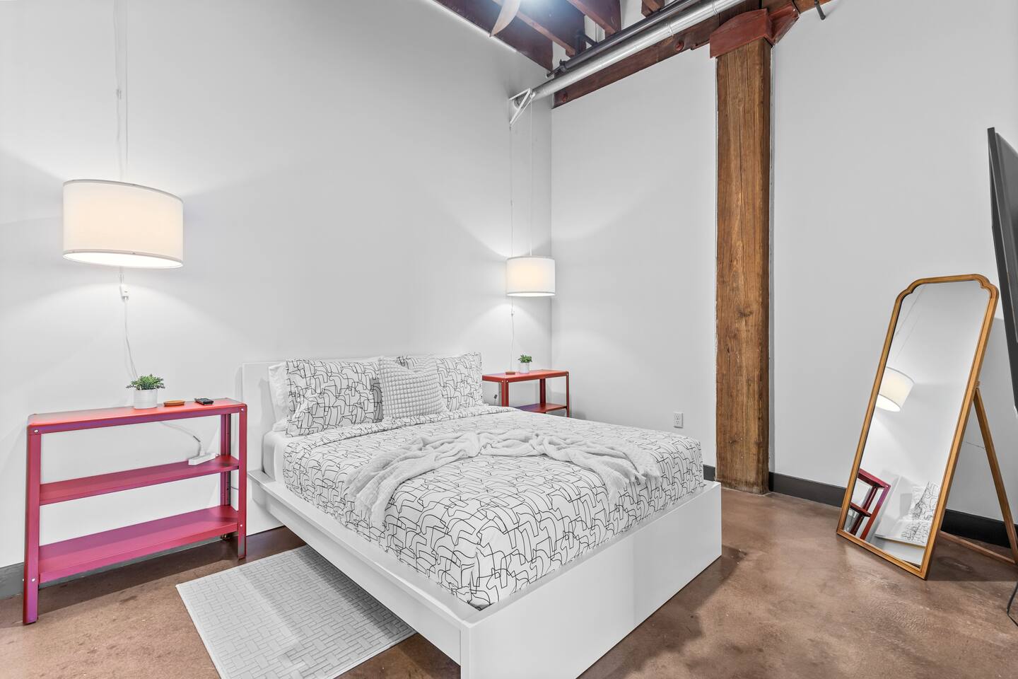 Guests have access to the entire loft apartment, shared clubhouse, shared gym, and shared roof deck