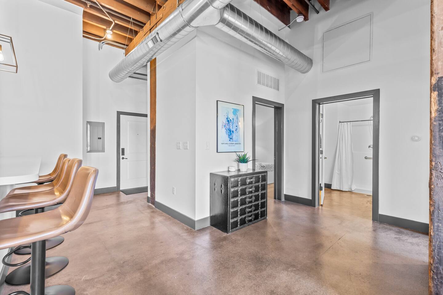Our loft is ideally located for exploring St. Louis on foot—just a short walk to the Gateway Arch, Convention Center, and downtown attractions. Rideshares are readily available, and the nearby MetroLink station offers easy access to the airport and other city highlights. Secure parking is available at an adjacent private lot for an additional fee.